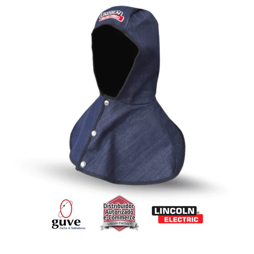 La Capucha para Soldador LINCOLN, fabricada con mezclilla 100% algodón y costuras reforzadas, ofrece una protección superior contra chispas y calor, garantizando un ajuste seguro y cómodo para procesos SMAW, GMAW y GTAW.
