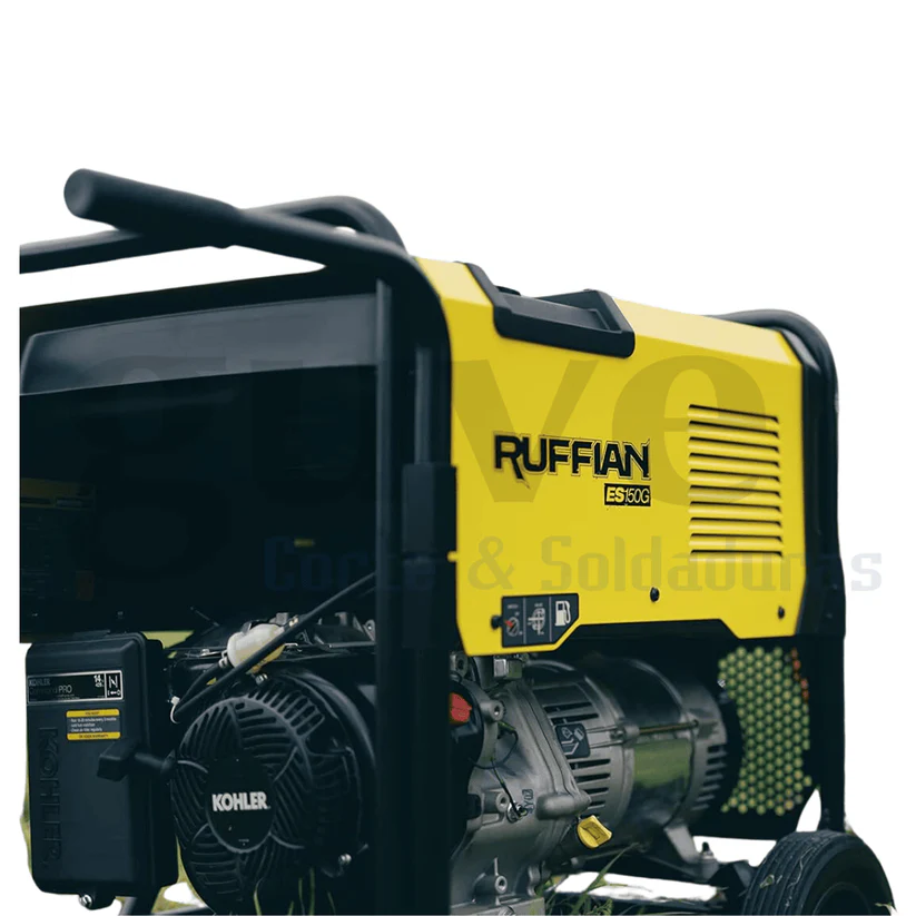 El primer gran cambio que notas con la RUFFIAN 150 es su impacto en el flujo de trabajo. Su generador de 4.5 kVA te permite soldar y usar otras herramientas eléctricas simultáneamente, lo que elimina la necesidad de múltiples equipos. Su diseño robusto, aunque no tan ligero como otros modelos, tiene un peso de 120 kg y unas dimensiones de 110x85x90 cm, lo que demuestra su capacidad de soportar un uso intensivo. El potente motor Kohler Command PRO CH440 de 14 HP que incorpora le permite dar un rendimiento superior.