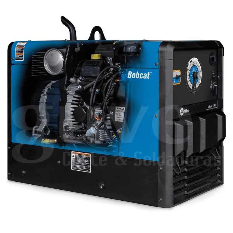 Hablando de las especificaciones técnicas, el corazón de esta máquina es su robusto motor Kohler de 23.5 HP, a gasolina. Un motor confiable es la base de una motosoldadora, y este motor garantiza un desempeño constante y potente incluso en las condiciones más exigentes. La salida de soldadura, con un rango de amperaje ajustable entre 20 y 265 A, te da el control necesario para soldar desde láminas delgadas hasta estructuras de acero pesado. Ya sea que necesites la precisión de un bajo amperaje para trabajos delicados o la potencia máxima para una soldadura estructural, la Bobcat™ 265X te lo entrega.